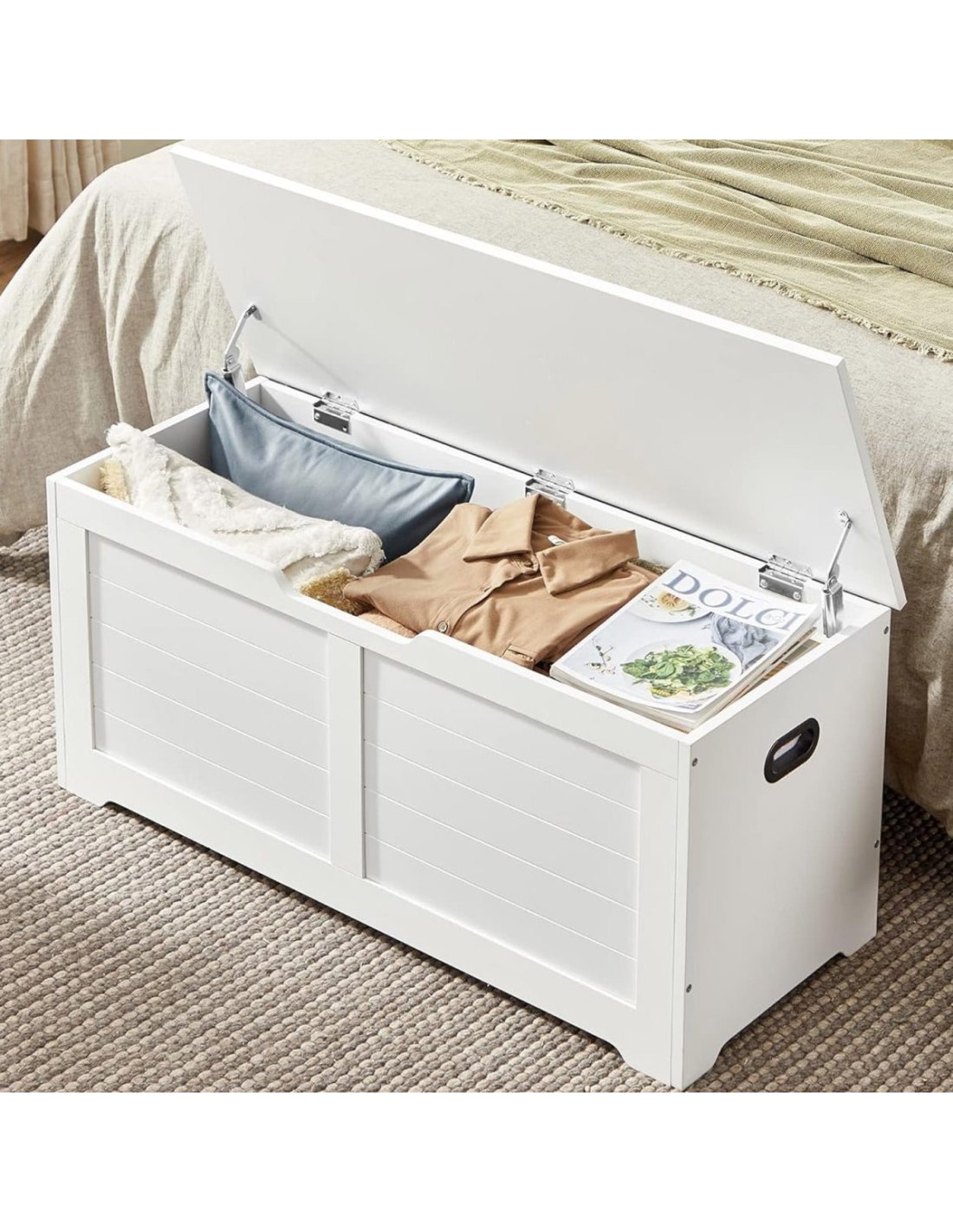 Biela truhlica je veľmi praktický a elegantný kus nábytku, ktorý nájde využitie v predsieni, chodbe, spálni či detskej izbe.