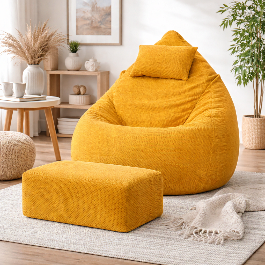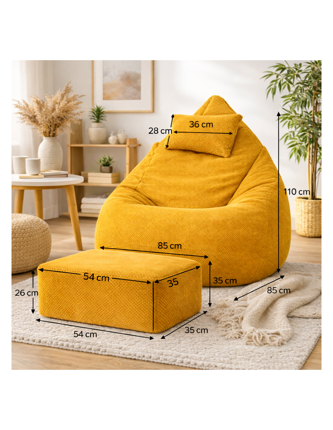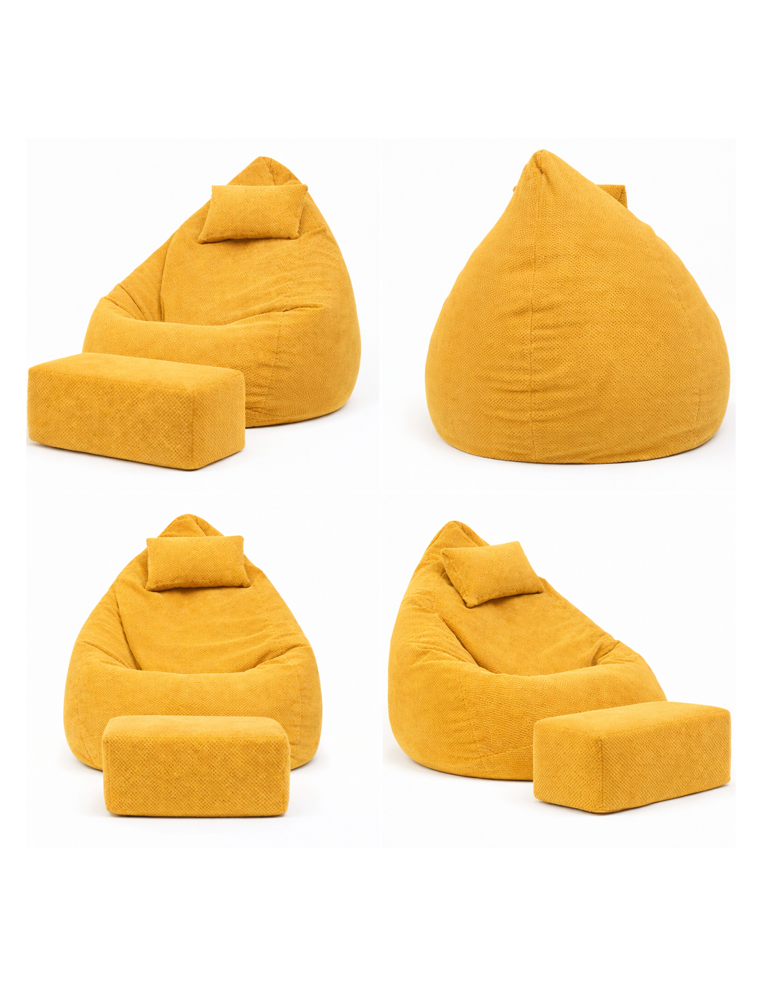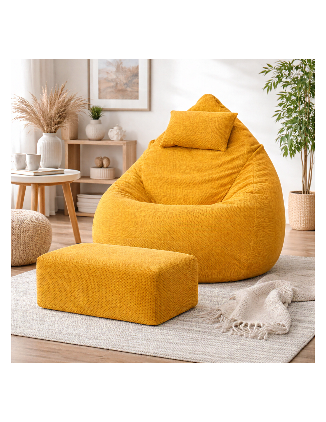 Sedací vak DOT RELAX GRANDE s podnožkou, vankúšom - žltá farba