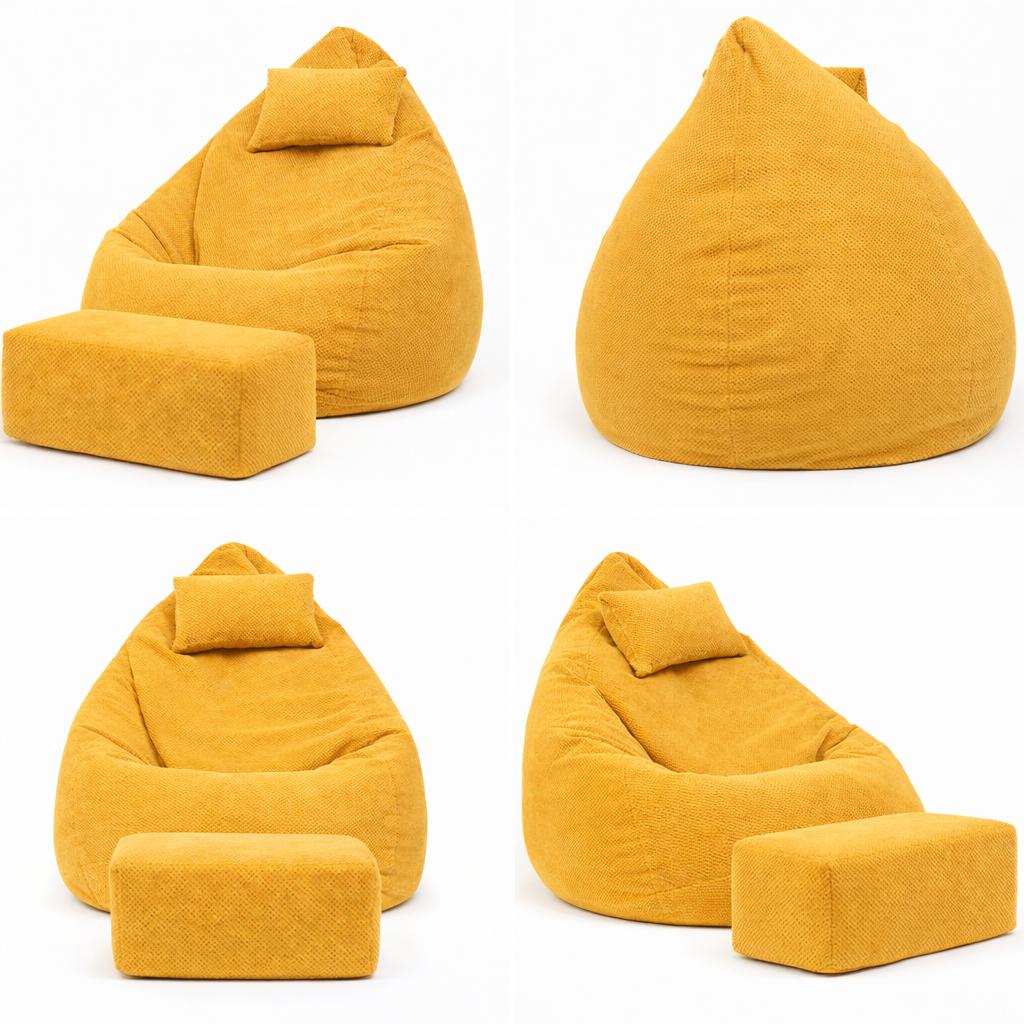 DOT RELAX GRANDE je veľký prémiový sedací vak, ktorý bol navrhnutý pre skutočný relax bez kompromisov. V jednom produkte získavaš kompletný relax set – veľký sedací vak, pohodlnú podnožku na nohy a samostatný vankúš na hlavu. Nemusíš nič dokupovať, všetko máš hneď.