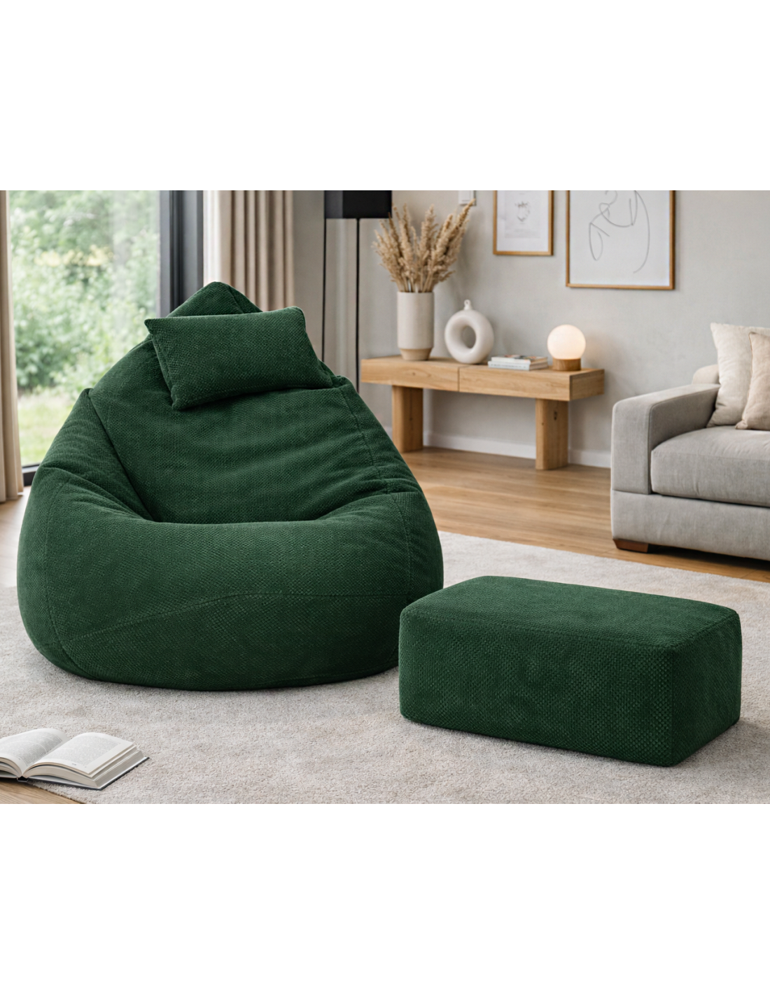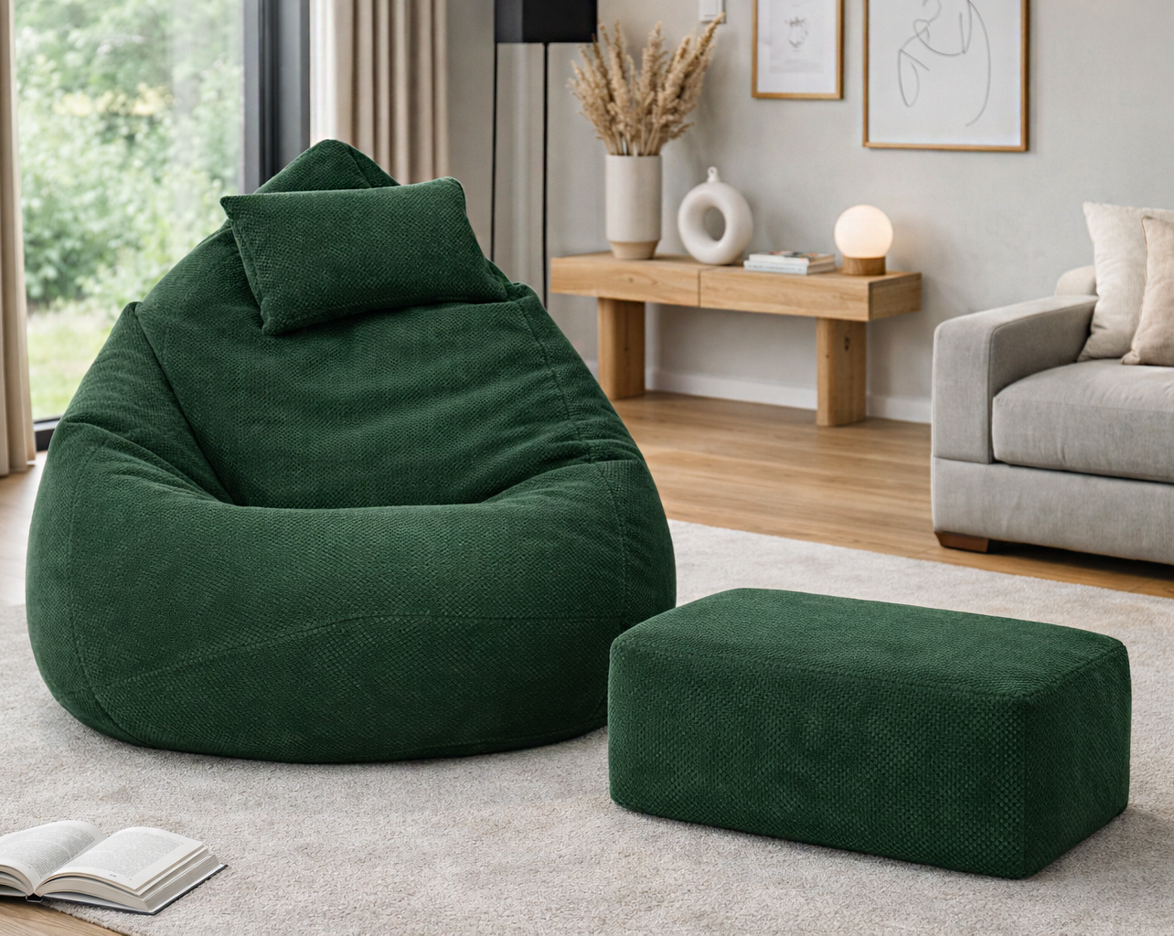 3-dielny set v cene – sedací vak + podnožka + vankúš