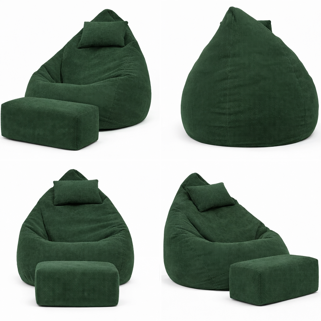 DOT RELAX GRANDE je veľký prémiový sedací vak, ktorý bol navrhnutý pre skutočný relax bez kompromisov. V jednom produkte získavaš kompletný relax set – veľký sedací vak, pohodlnú podnožku na nohy a samostatný vankúš na hlavu. Nemusíš nič dokupovať, všetko máš hneď.