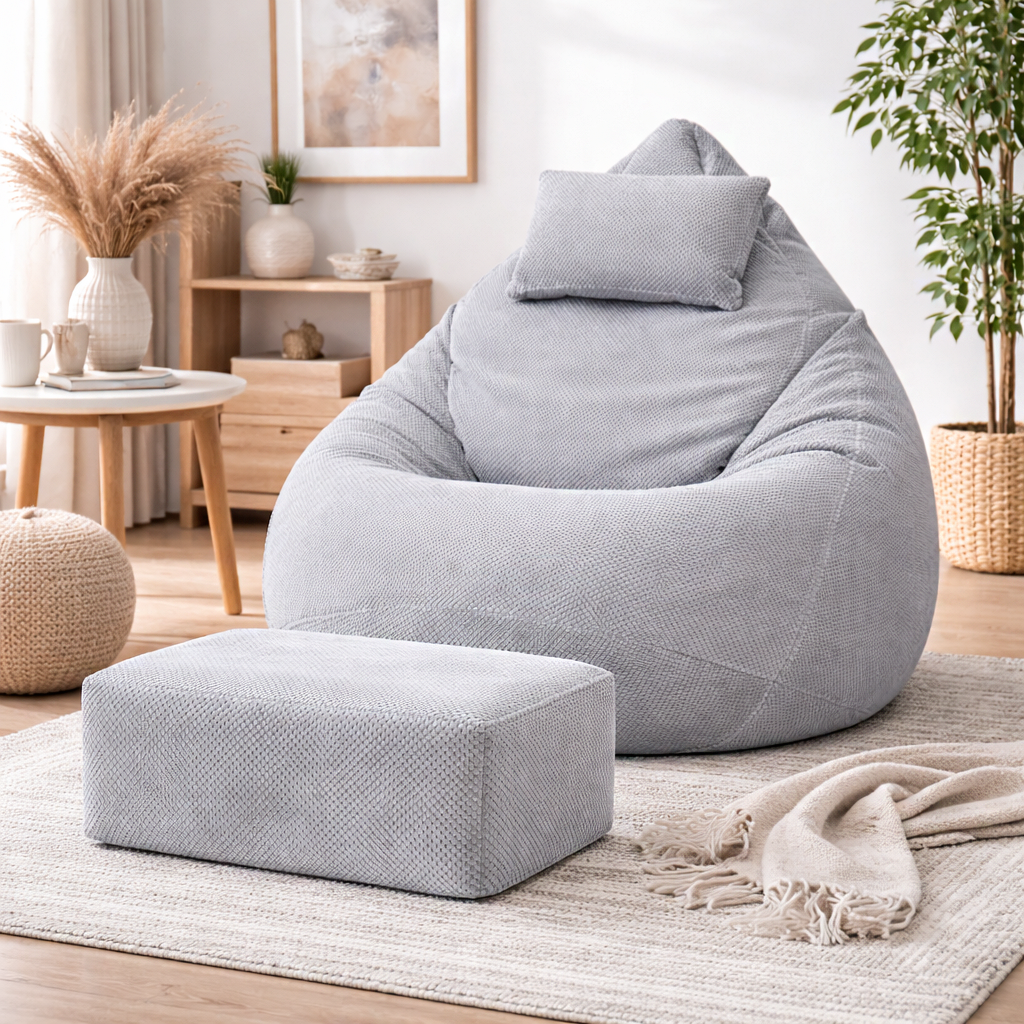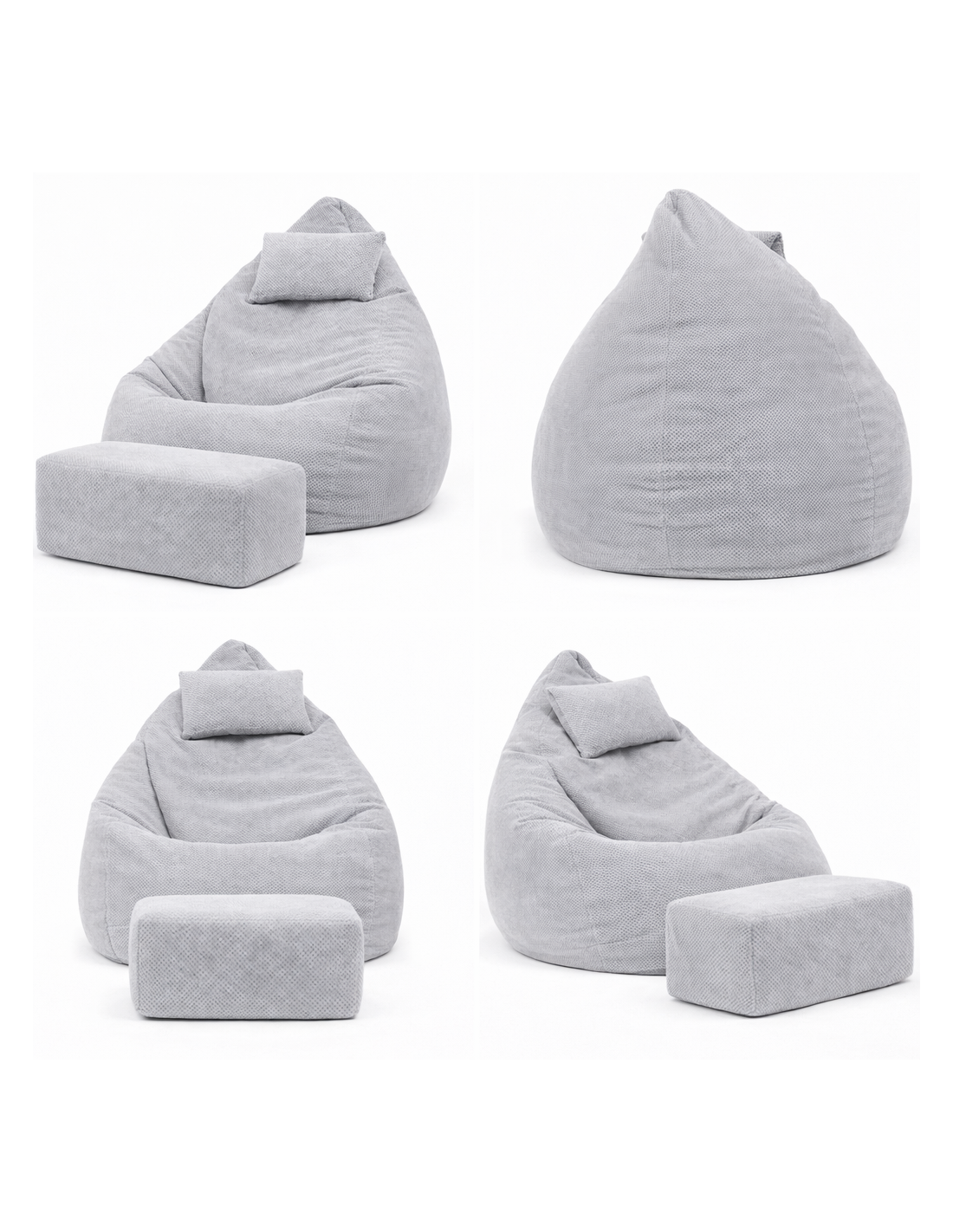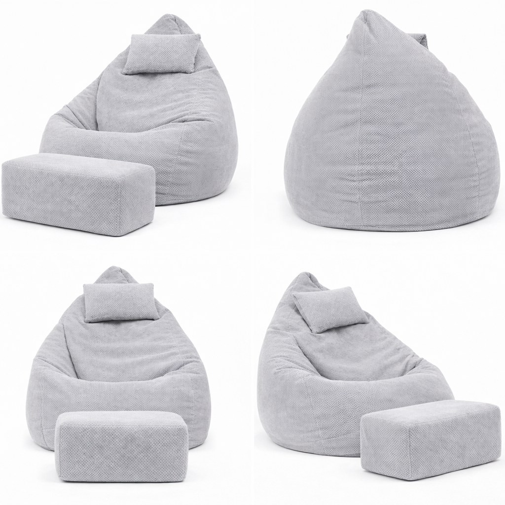 DOT RELAX GRANDE je veľký prémiový sedací vak, ktorý bol navrhnutý pre skutočný relax bez kompromisov. V jednom produkte získavaš kompletný relax set – veľký sedací vak, pohodlnú podnožku na nohy a samostatný vankúš na hlavu. Nemusíš nič dokupovať, všetko máš hneď.