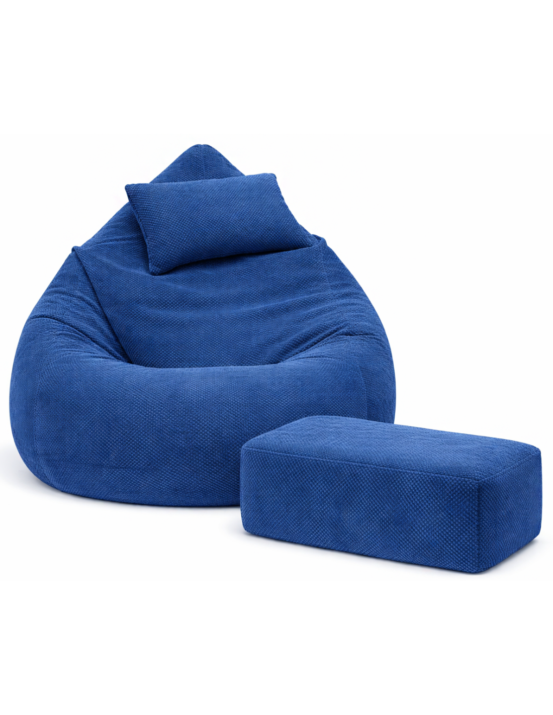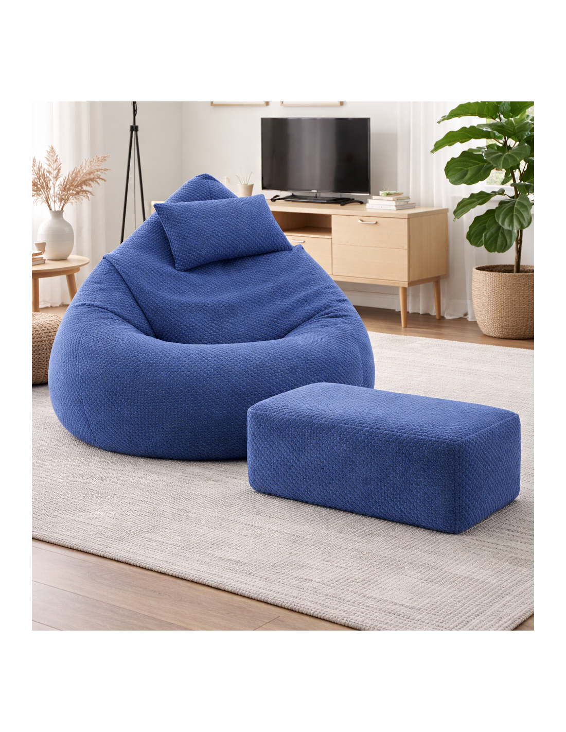 Sedací vak DOT RELAX GRANDE s podnožkou, vankúšom - modrá farba