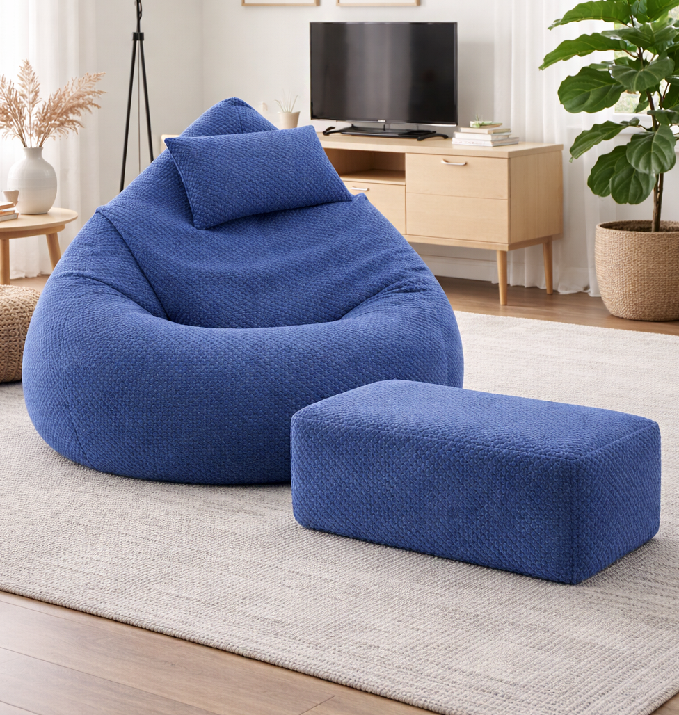 DOT RELAX GRANDE je veľký prémiový sedací vak, ktorý bol navrhnutý pre skutočný relax bez kompromisov. V jednom produkte získavaš kompletný relax set – veľký sedací vak, pohodlnú podnožku na nohy a samostatný vankúš na hlavu. Nemusíš nič dokupovať, všetko máš hneď.