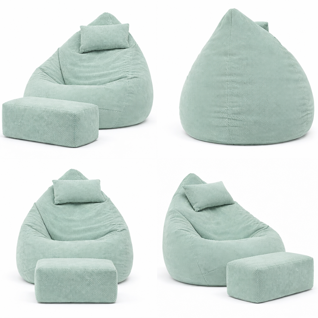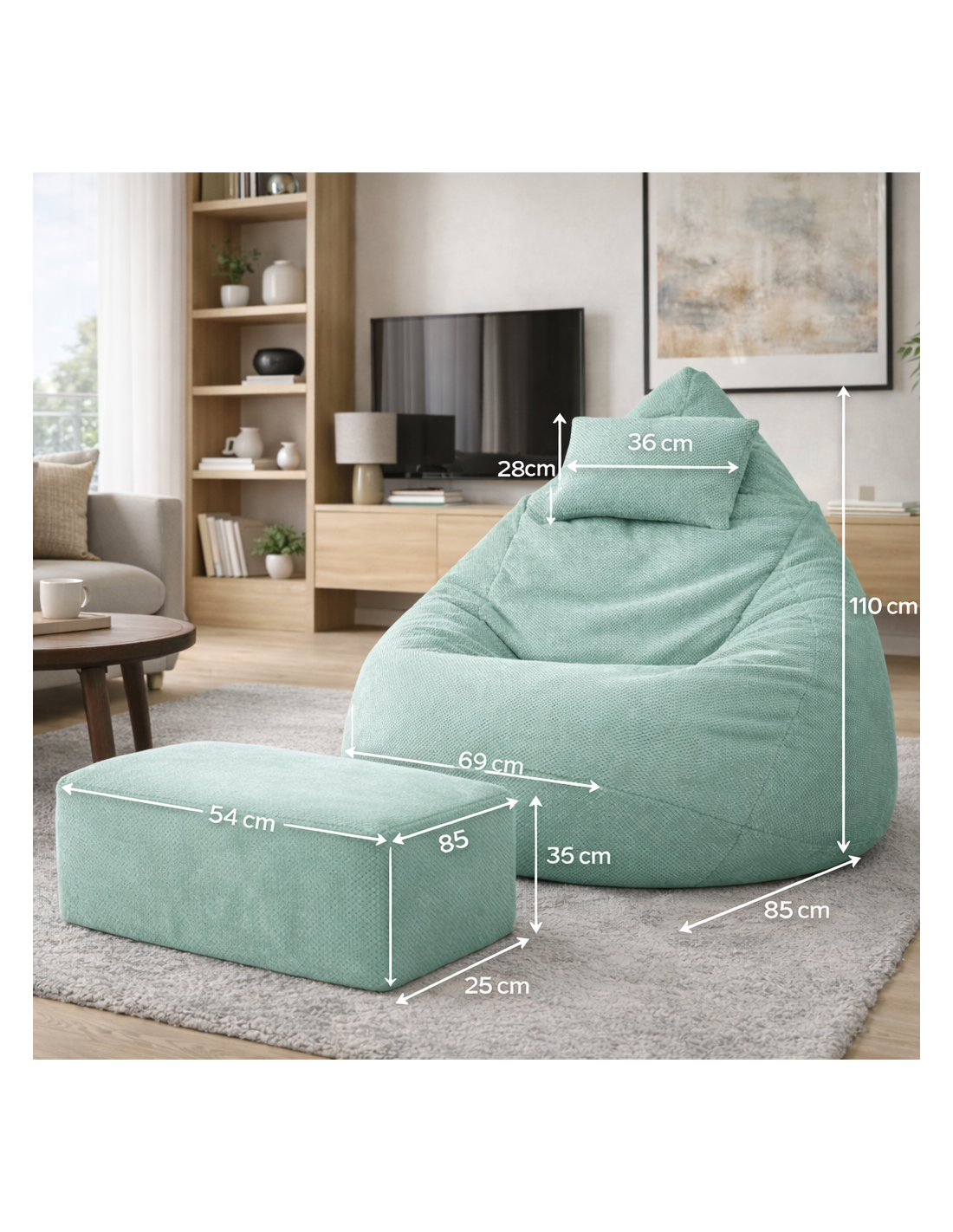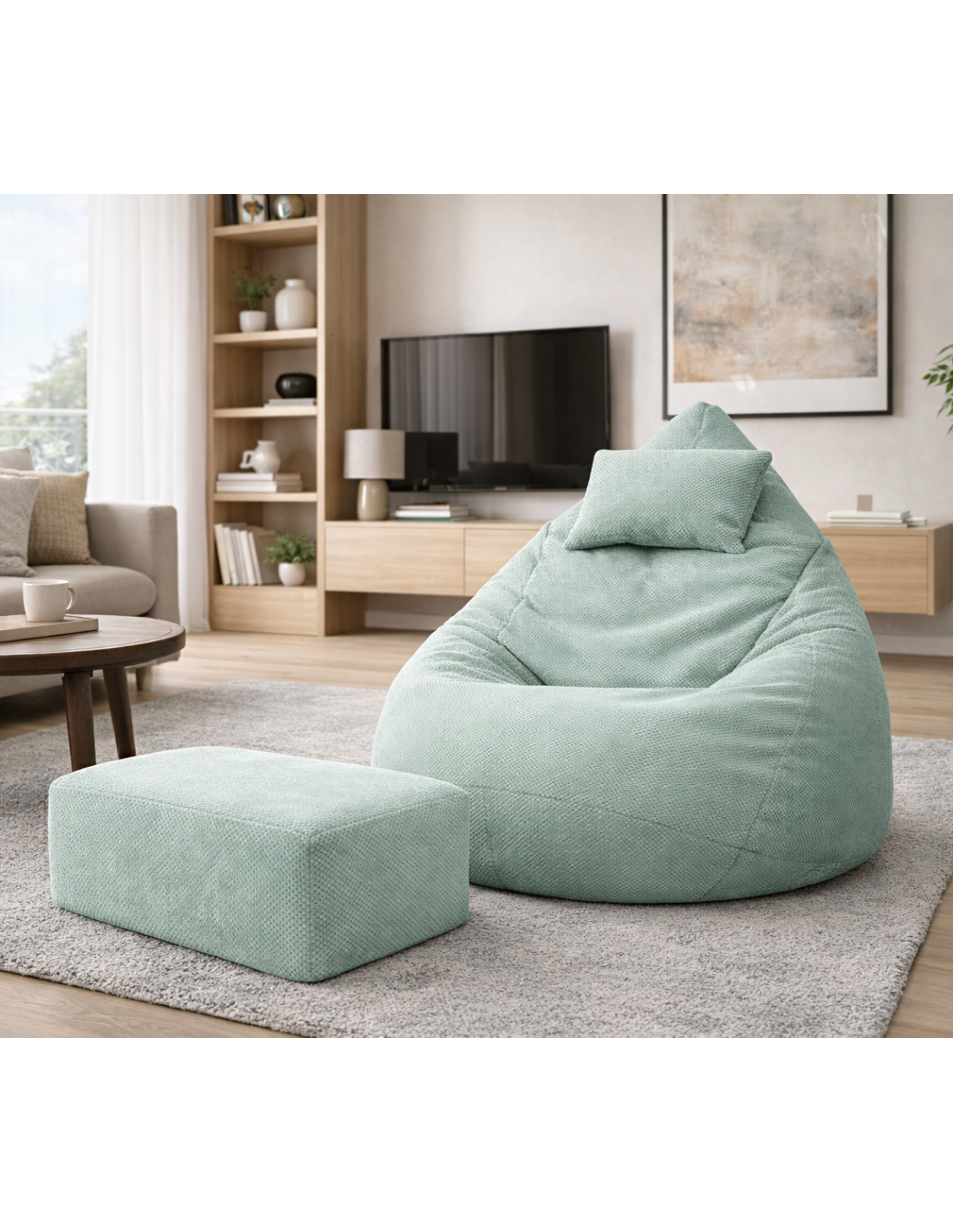Sedací vak DOT RELAX GRANDE s podnožkou, vankúšom - mätová farba
