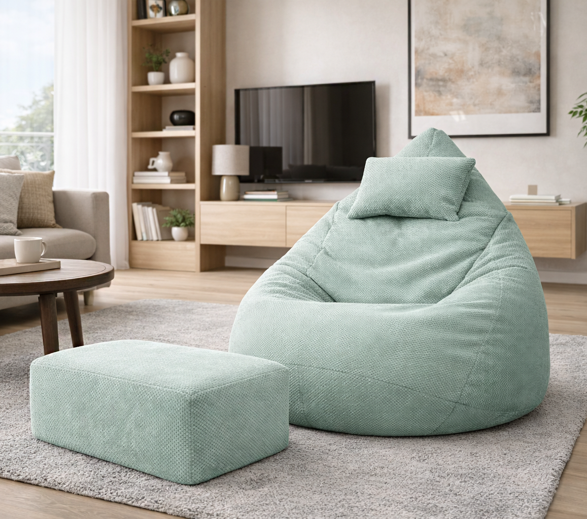 3-dielny set v cene – sedací vak + podnožka + vankúš