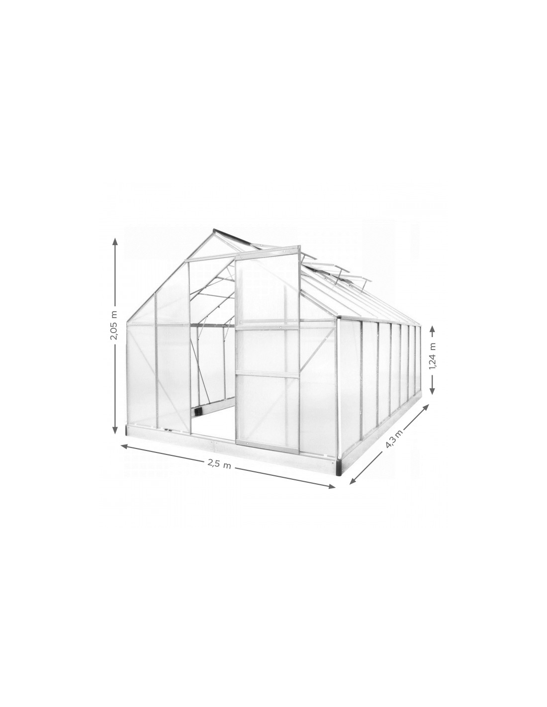 Rozmery skleníka: 250 x 430 x 124/205 cm