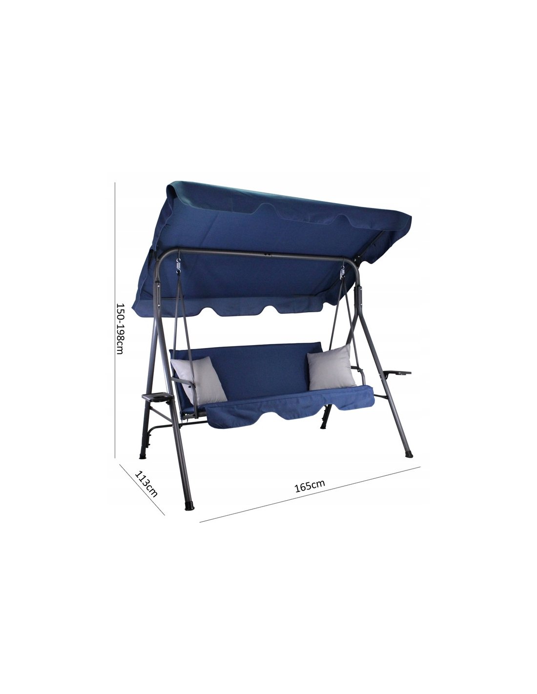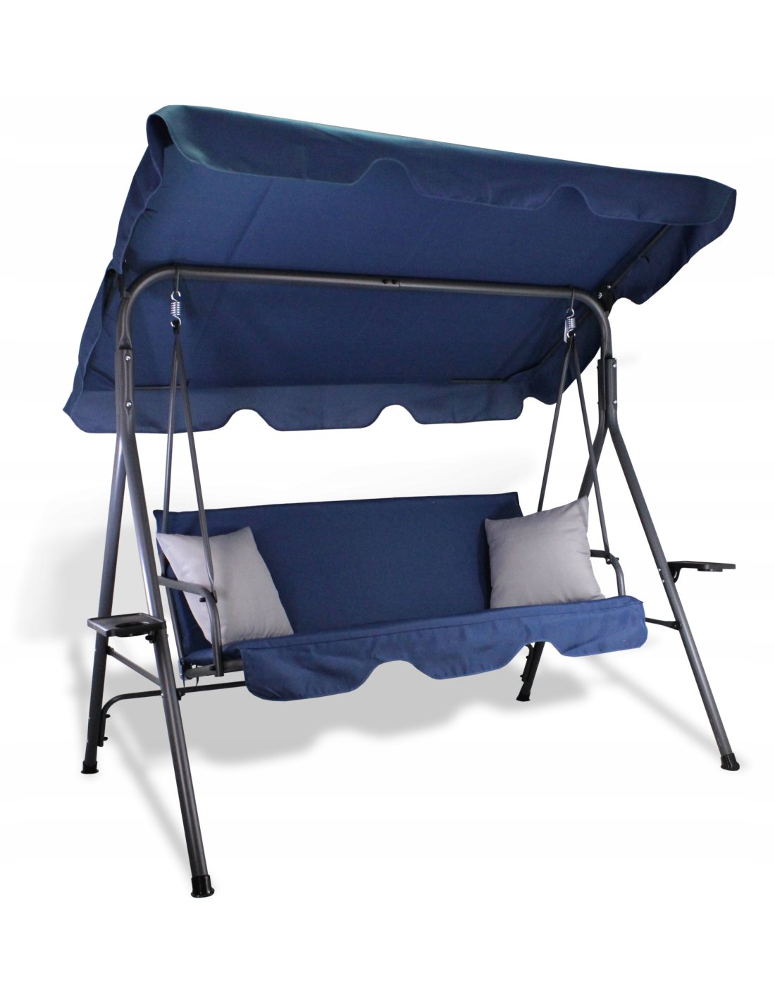 Záhradná hojdačka GARDEN-LINE pre 3 osoby s držiakmi na nápoje + vankúše v modrej farbe