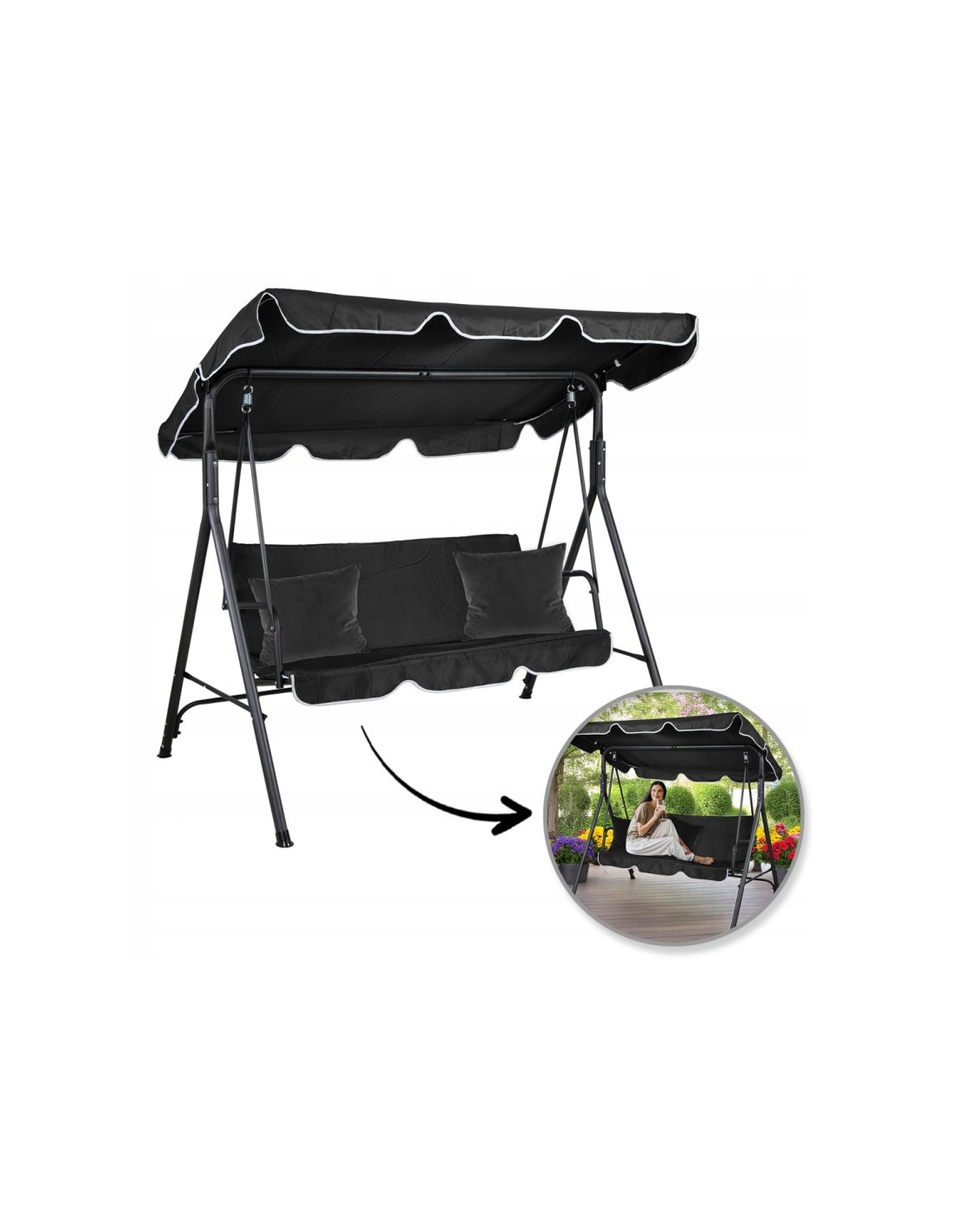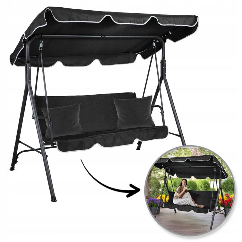 Záhradná hojdačka HO01CZ s vankúšmi v čiernej farbe