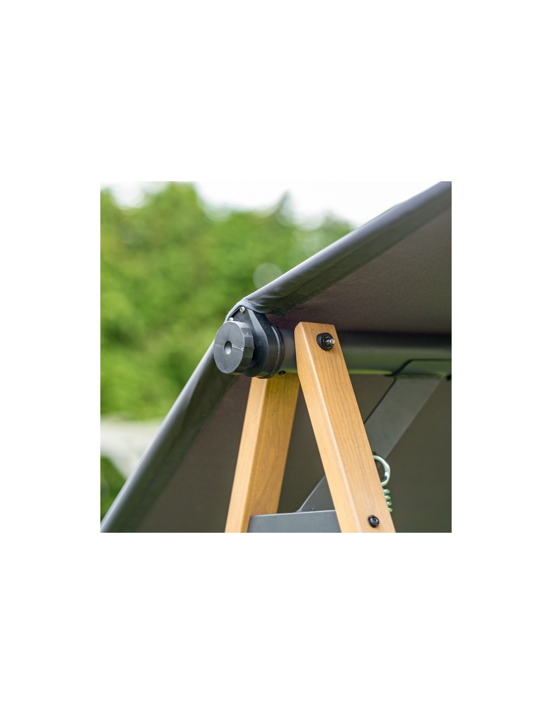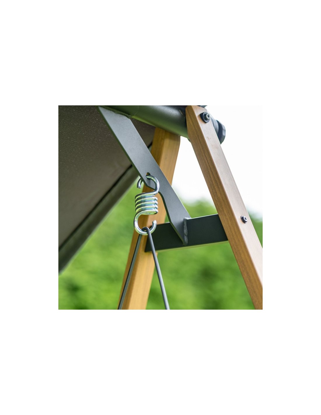 Hojdačka umožňuje pohodlný odpočinok v akejkoľvek polohe. Veľké sedadlo s operadlom je spôsob, ako relaxovať pri hojdaní. Vďaka strieške je miesto odpočinku optimálne chránené pred slnkom. Hojdačka sa perfektne hodí do tých najmódnejších aranžmánov terás a záhrad. Kombinácia grafitu s prvkami vo farbe dreva je elegantná a nadčasová.
