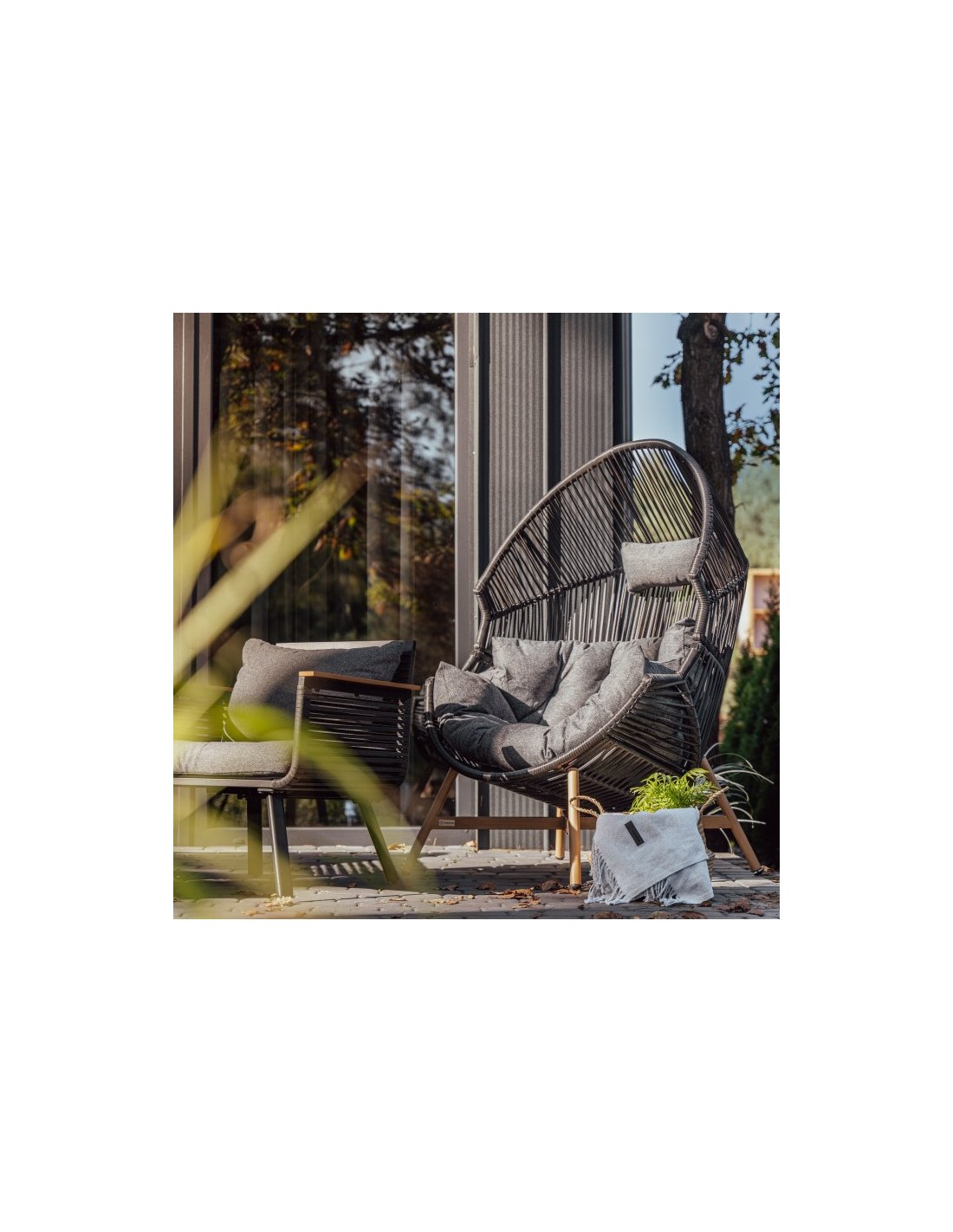 Veľké záhradné kreslo má optimálne profilovaný kokon, ktorý vám umožní odpočívať v akejkoľvek polohe. Vybavené mäkkým sedadlom a opierkou hlavy, čo dodatočne zvyšuje komfort relaxácie. Vankúše sú vyrobené zo spriadaného polyesteru, ktorý sa vyznačuje nižšou absorpciou vlhkosti a nekrčí sa. Celé je to pohodlné kreslo, ktoré bude vašim obľúbeným miestom na oddych.