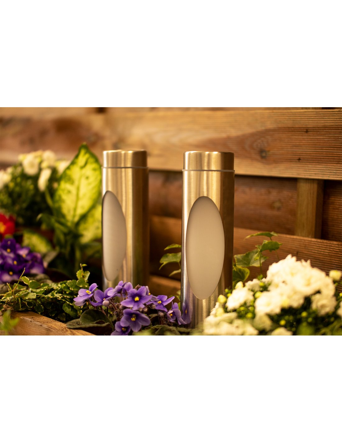 Solárne svietidlo série TOGO M v saténovej farbe POLUX v rôznych farbách bude dekoratívnym a praktickým osvetlením vašej záhrady.