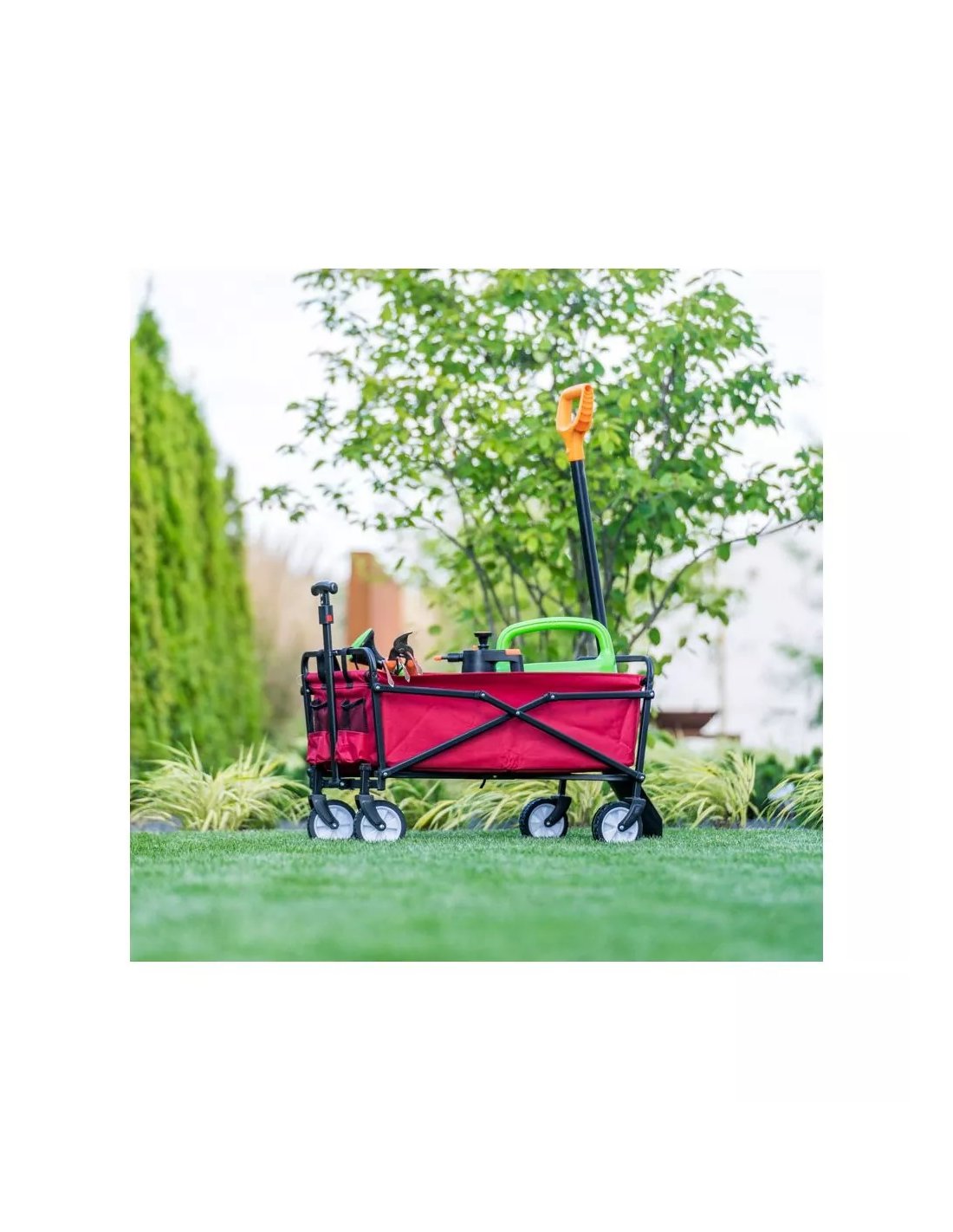 Záhradný vozík je ako stvorený pre ľudí pracujúcich na záhrade alebo pre starších ľudí a deťom poskytuje veľa zábavy. Priestranný prepravný vozík umožňuje okrem iného prepravovať: sadenice, rastliny, náradie, kamene, zozbierané ovocie, drevo, konáre, zeminu, hnojivá, lístie a mnoho iných nákladov.