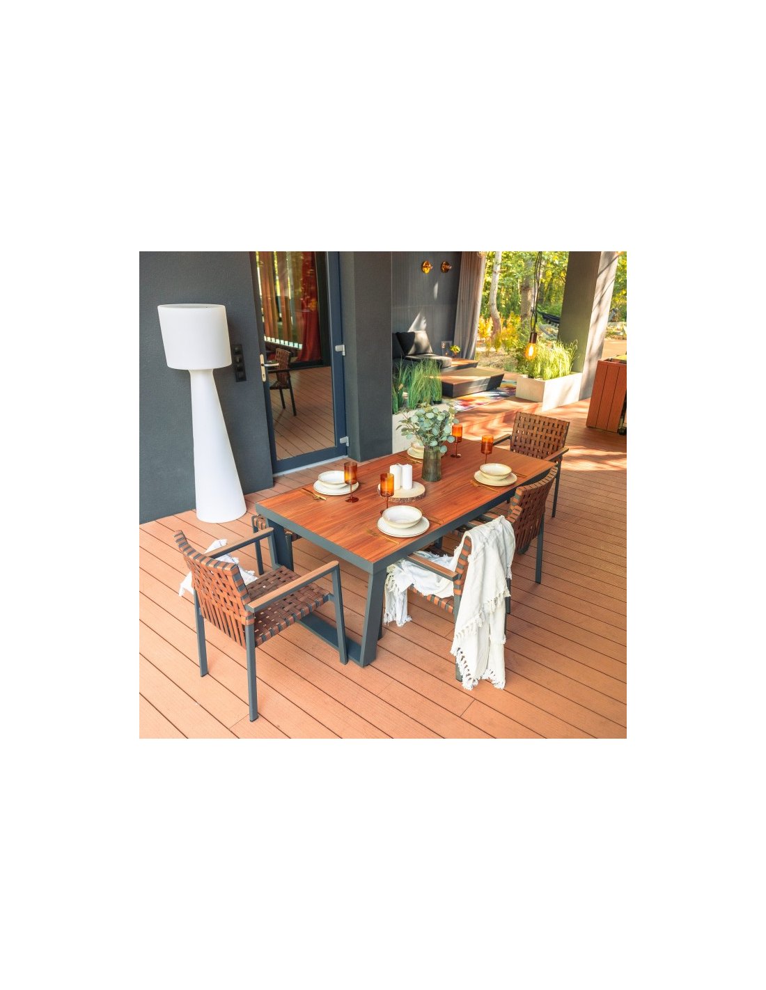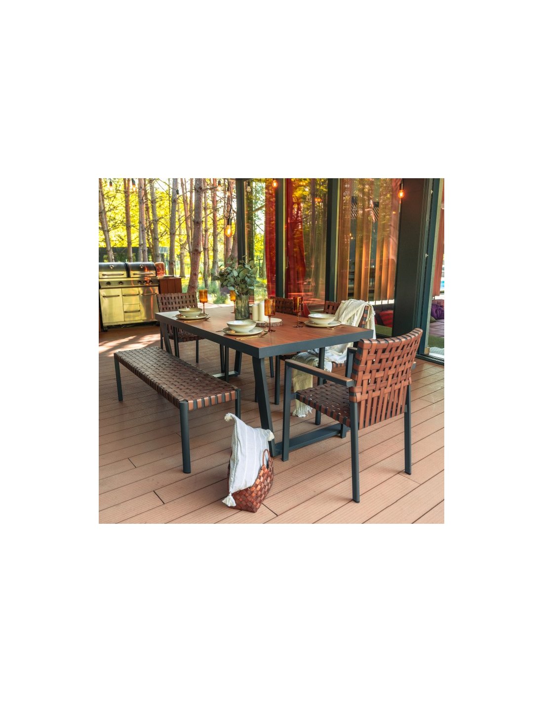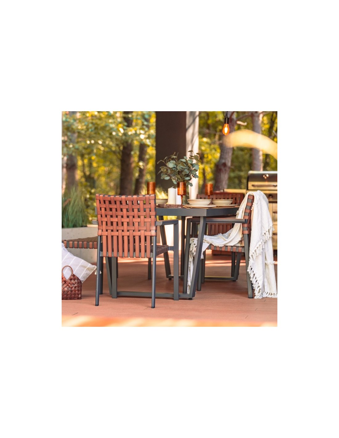 Štýl nábytku sa hodí k najmodernejším terasovým a záhradným úpravám. Pletená imitácia kože bude dokonale ladiť so zeleňou záhrad. Spojenie netradičného dizajnu s praktickými riešeniami je návrhom pre všetkých, ktorí si radi vyberajú nadčasový a praktický nábytok. Hliníkový jedálenský nábytok bude optimálnym riešením na zariadenie nielen záhrady, ale aj domácnosti.