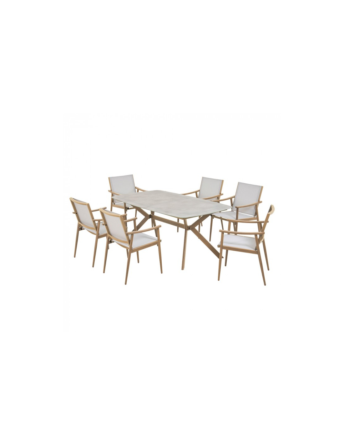Záhradná jedálenská súprava Napa je perfektným riešením pre tých, ktorí hľadajú elegantný a funkčný nábytok do svojej záhrady alebo na terasu. Je navrhnutá pre šesť osôb a umožňuje vám vychutnať si spoločné jedlá vonku v príjemnom prostredí. Vďaka minimalistickému dizajnu sa hodí do rôznych štýlov interiéru a jej moderný vzhľad určite dodá šarm každej záhrade.